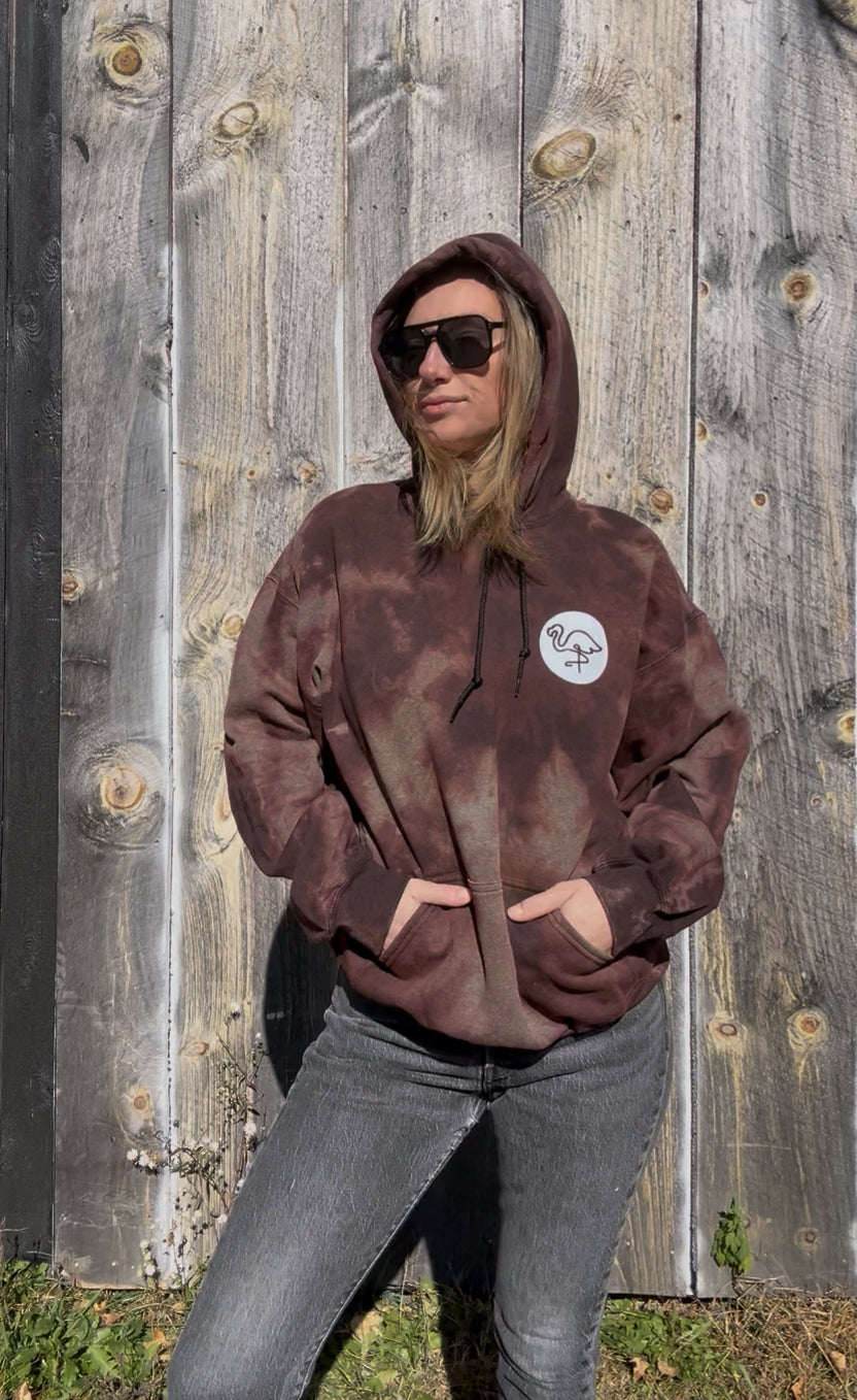One-of-a-kind bleach dye hoodie featuring the Discard Dreams logo. Unisex.